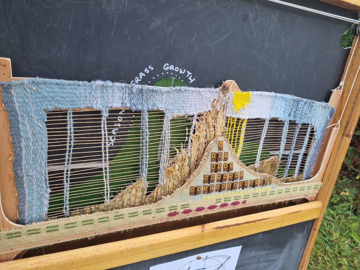 Graphs showing yield information and the science of meadows created using fabrics including meadow grasses, made by Richard Brown and family.